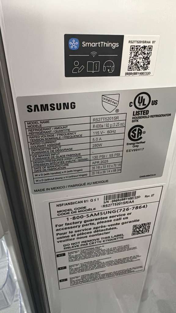 Samsung RS27T5201SR 36 Inch Freestanding Side by Side Smart Refrigerator