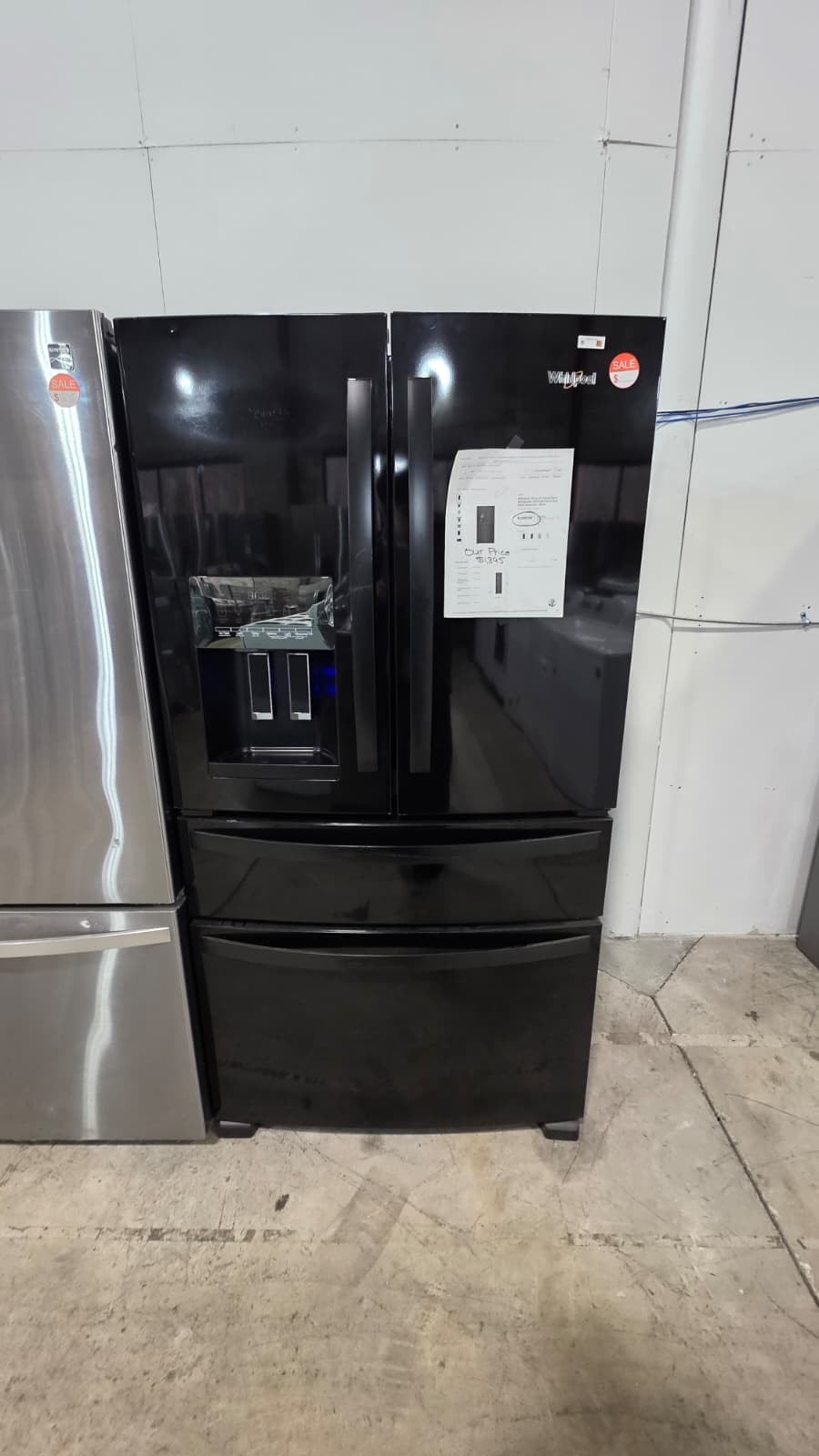 WHIRLPOOL NEW BLACK FRENCH DOOR REFRIGERATOR WITH WARRANTY